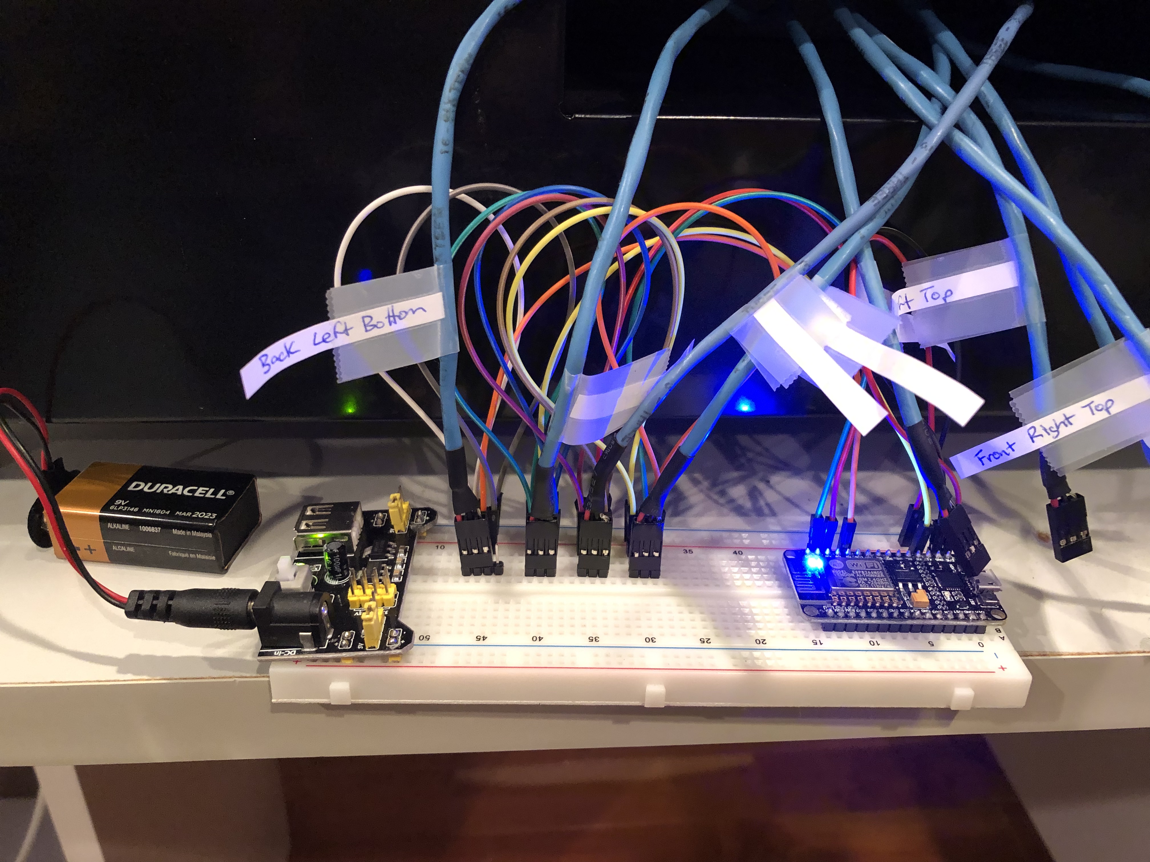 I embarked upon wiring up a sensor in all eight corners of my dehydrator, plus one smack-dab in the middle of the middle rack. That is admittedly a lot of sensors for what is less that a 2' x 2' cube.