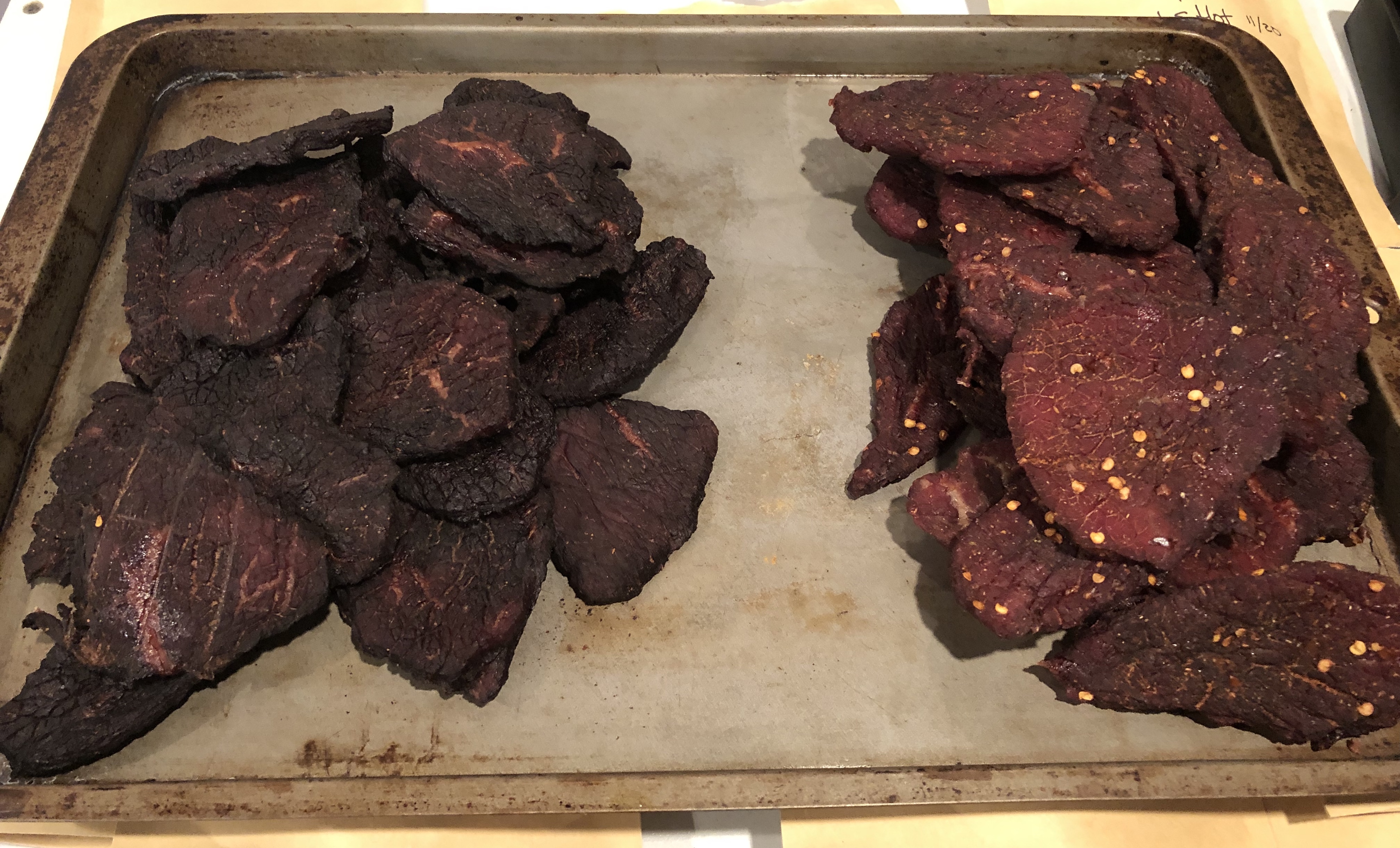 I recently started making my own craft beef jerky. I have ten batches under my belt at this point. I started with a pellet-smoker at 160 degrees F which gave me incredible flavor, but the appearance of the jerk was always burnt looking and the batches were VERY uneven in their drying times. I had to babysit the batches to pull pieces off anywhere from 3-5 hours. So, I added a dehydrator to my arsenal about six batches ago.