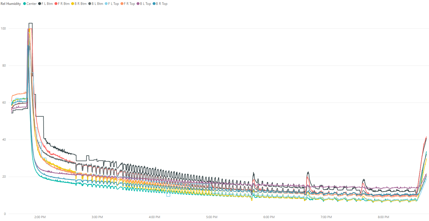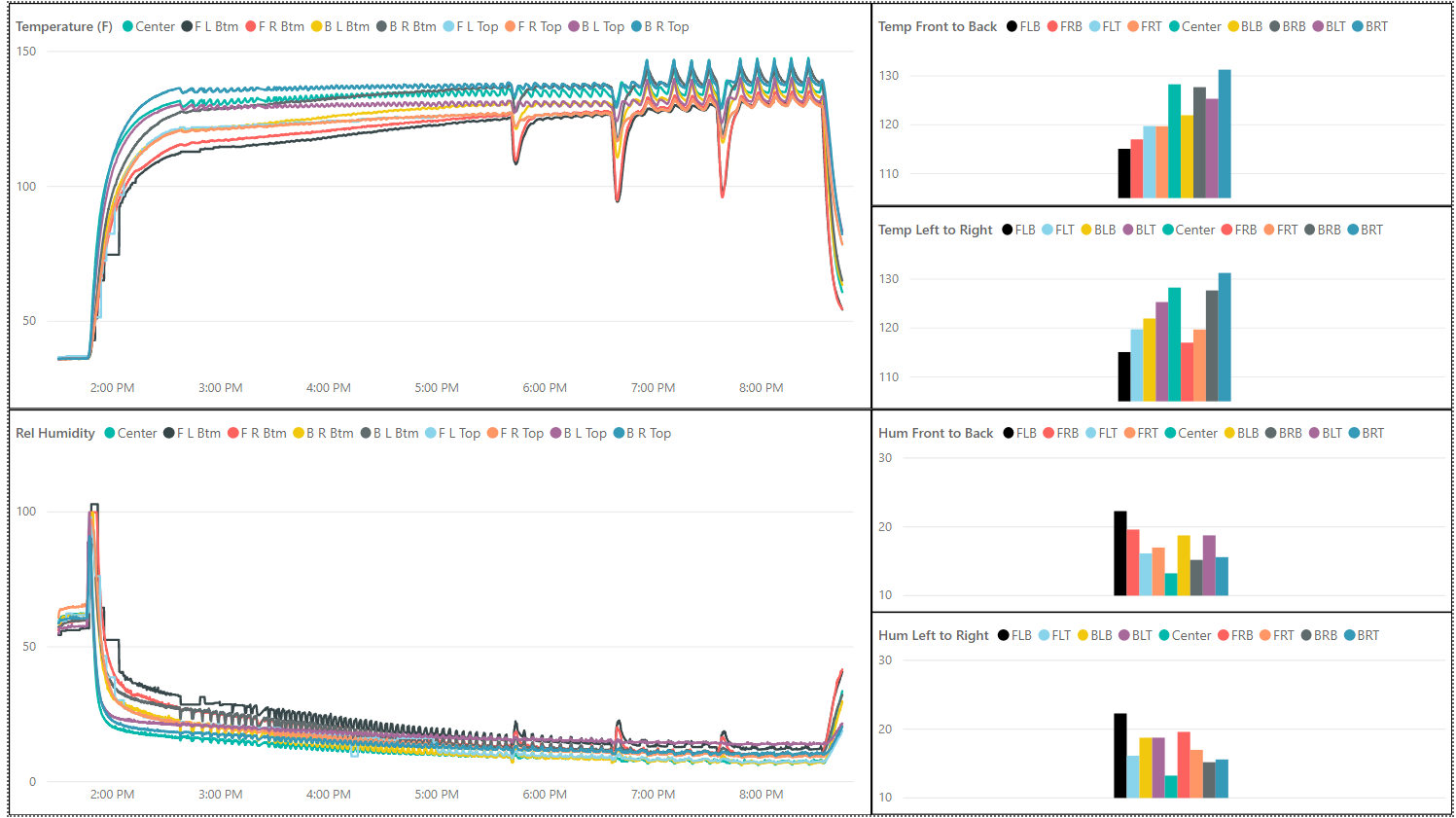 This all coorelates nicely with my simple observations. I always pull my first pieces from the back-top, then the lower-back. They continue to come off, with pieces in the front being last. Pieces in the lower-front left of my dehydrator are often relocated to "higher" spots.